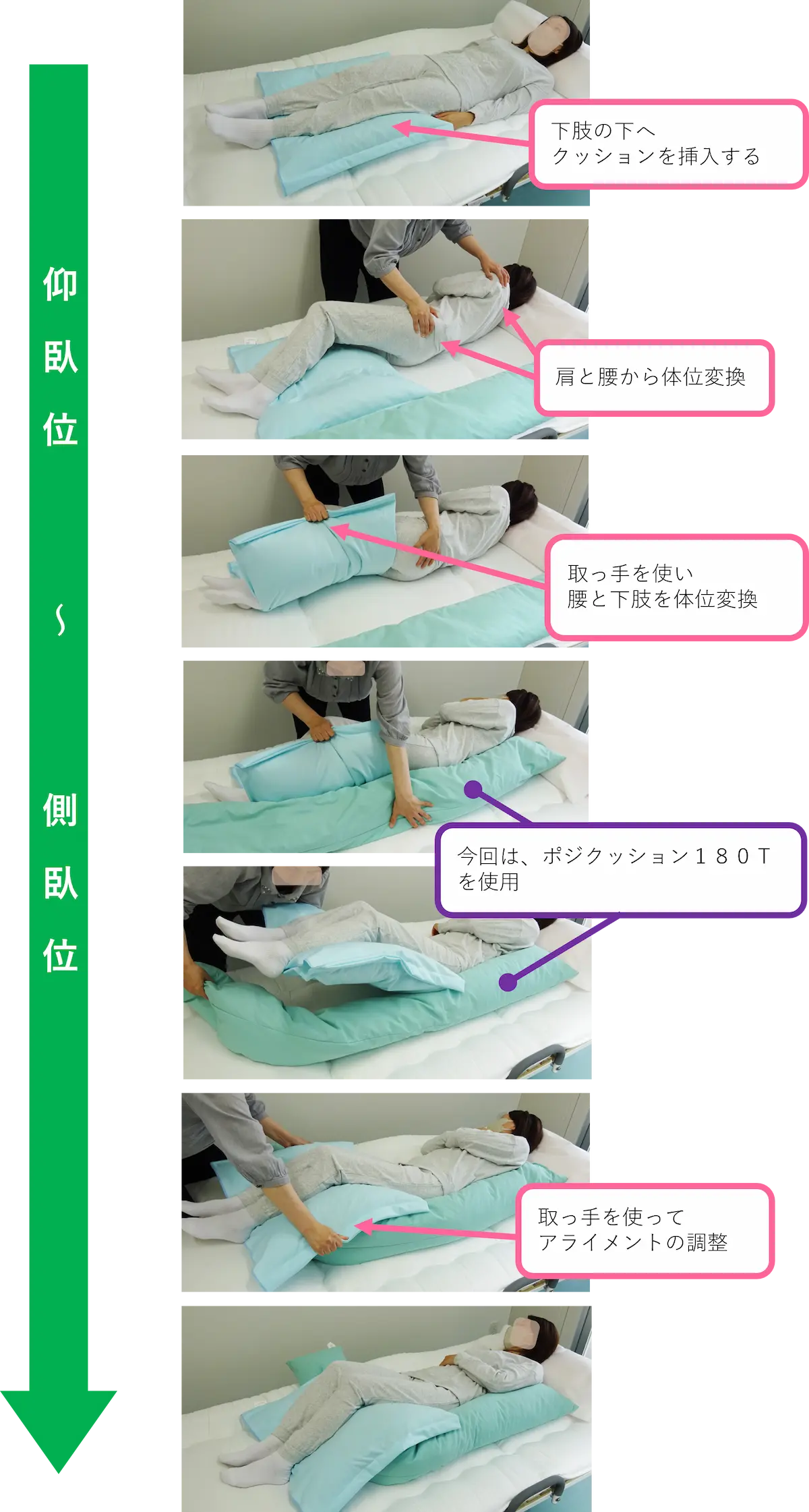 両サイドに取っ手があり、体位変換の際に使用できます。