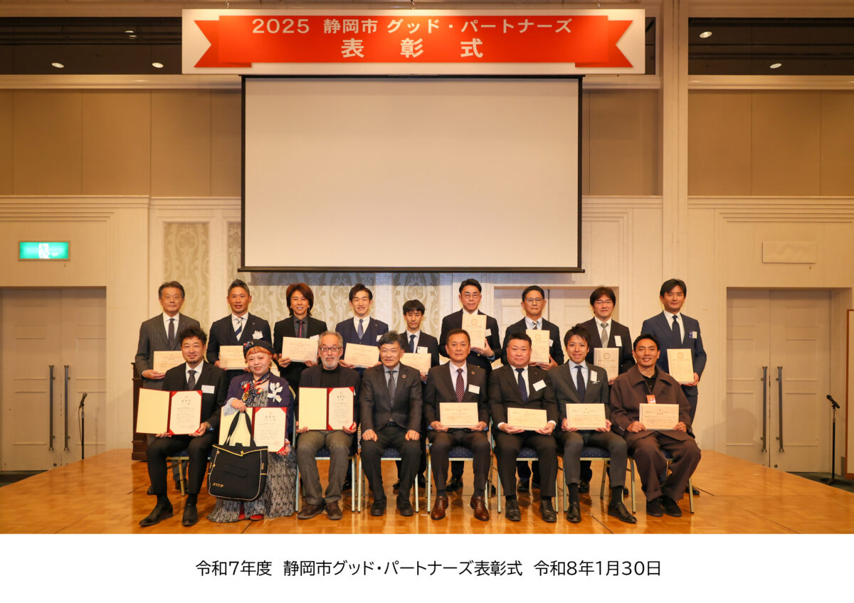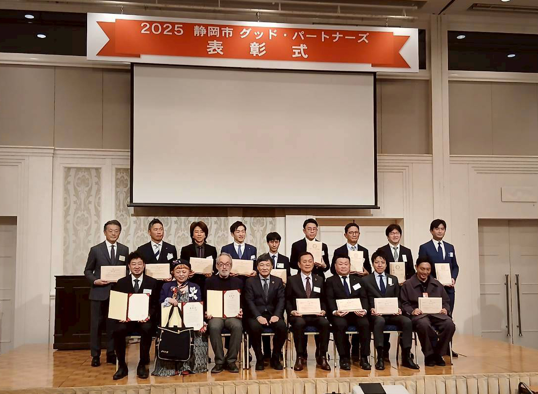 2026 年 1 月 30 日金曜日 静岡市 2025グッド・パートナーズ表彰式が行われました。 弊社は、中小企業技術表彰を受賞いたしました。 今まで支えて頂いた社員やプロジェクトメンバーに恵まれ感謝の気持ちで一杯です。